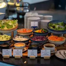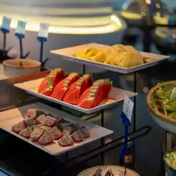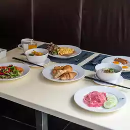 Breakfast is served buffet-style. The restaurant is located on the ground floor, near the lobby. The food selection is quite extensive. We offer a selection of Thai and international cuisine.