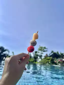 The swimming pools are surrounded by trees, giving off a tropical rainforest vibe. There are lounge chairs by the pools for relaxation. However, one of the pools has a depth of 1.37 meters, which felt a bit intimidating for someone of my height, as I had to tiptoe to avoid the water reaching my chin.