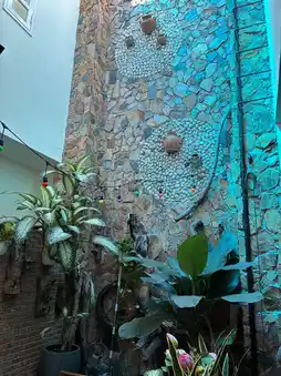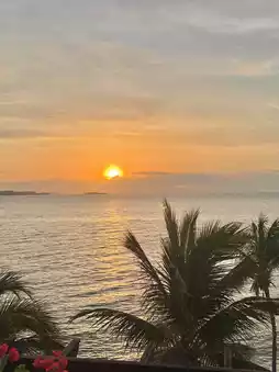 Dinner at dusk in an open-air setting without air conditioning. Initially, we planned to sit under the covered area, but it felt a bit warm inside. Stepping outdoors, we found a gentle breeze that made it cooler and more comfortable, with a better ambiance. As the sun sets, the sky turns a beautiful shade of purple, creating a serene and picturesque view. If you prefer outdoor seating, it's recommended to book in advance or arrive early.