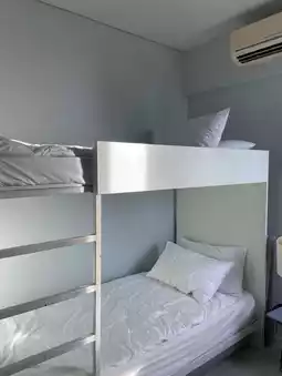 Veranda Resort Pattaya Na Jomtien is highly recommended for anyone staying in Pattaya or Na Jomtien. The accommodations are incredibly beautiful and right on the beach. The rooms feature one master bedroom with an ensuite bathroom and one bunk bed. There's also an outdoor bathroom, a kitchen, and a living room with a flat-screen TV. The balcony opens to sea views.