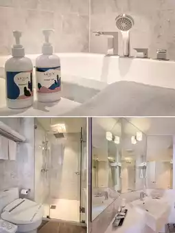 I stayed in a Deluxe Pool View room. The room was spacious, 35 square meters, with a view of the pool right out the window. It had a rain shower and a bathtub. The pool was crystal clear, beautiful, and clean. There's also a fitness center, spa, and sauna. The staff were also very helpful.