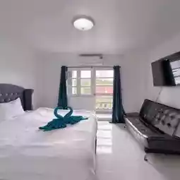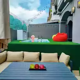 This 3-story house has 10 bedrooms and 12 bathrooms, and is just a 200-meter walk to Jomtien Beach! It's incredibly close! This pool villa offers the ultimate in privacy, with free Wi-Fi, a swimming pool, karaoke, a pool table, disco lights, and a rooftop chill-out zone.