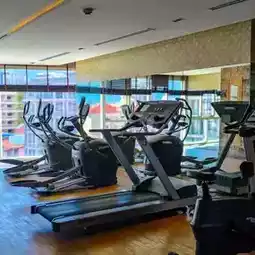 The pool features a Jacuzzi and an outdoor poolside bar. There's a fitness center on the 6th floor and a spa.