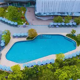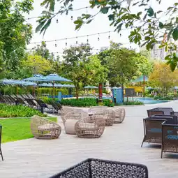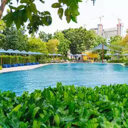 The highlight was the pool area. The pool was very spacious, beautiful, and had a great atmosphere. There's a slide for kids and a 𝙥𝙡𝙖𝙮 𝙜𝙧𝙤𝙪𝙣𝙙 area. This relaxing area is shady and refreshing. There's a full range of activities, including basketball, pool tables, and a fitness center. It's just a few steps to 𝙩𝙚𝙧𝙢𝙞𝙣𝙖𝙡 𝟮𝟭.