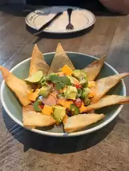 They offer pasta, rice dishes, salads, snacks, and exquisitely designed cocktails in beautiful, vibrant glasses.