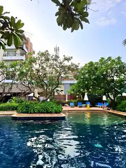 🏖This large hotel is located on Jomtien Beach, within easy walking distance of the beach. There's a large swimming pool right in front of the hotel, allowing you to swim and enjoy the beach view.