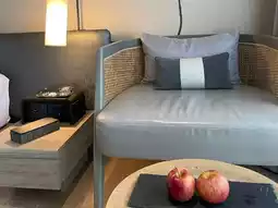 "Beautiful" refers to the hotel's stunning design, featuring white and cream tones that create a serene atmosphere. Although not directly by the sea, the sea breeze can be felt from afar. It's one of the few hotels where sitting by the pool allows the cool sea breeze to overpower the scorching heat of the sun.