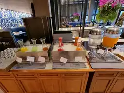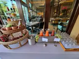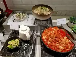 2. For dining, we only used the "Infinity Restaurant," which serves breakfast and all-day dining. As mentioned earlier, I was impressed with the breakfast. I recommend taking your time here. Breakfast starts at 6:30 AM, but seating is somewhat limited. There are both indoor and outdoor seating options. If you enjoy a sea view, sit outside, but it’s quite hot this time of year. In front of the restaurant, there’s a small alcohol station for those nursing a hangover and a little play area for kids to toss rings and decorate snacks. It’s delightful! However, the breakfast line lacks a dedicated kids’ corner or kid-friendly menu like some other hotels. Also, it’s a pity there’s no ice cream for breakfast.