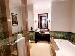 You can request additional bottled water anytime; they provide Crystal brand in glass bottles. Towels can also be requested for the kids, but the towels are a bit old, with a slightly dull white color. The bathroom has strong water pressure at all points and includes a bidet spray. The soap and shampoo smell great, but the showerhead in the bathroom is positioned quite high, even at its lowest setting, making it a bit challenging to bathe the kids.