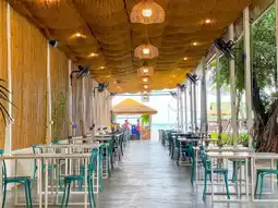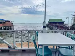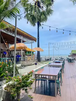 The restaurant offers a great atmosphere by the sea, with a pier extending into the ocean where you can take a stroll and snap some photos. If you visit in the evening, you can enjoy a beautiful sunset view.