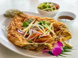 - Fried sea bass with fish sauce (490 THB)