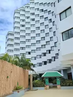 This large hotel is located on Jomtien Beach. This tall building stands out, occupying an entire block between the beach road and the other side, easily avoiding traffic.