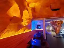MARS is a Mars-themed cafe in Pattaya. Decorated in a Martian style, the large hall feels like you're actually touching the Martian surface, complete with craters and bright red and orange dust. The vibrant colors are truly captivating. Beyond the main hall, there are other spaces decorated with a space theme. The cafe isn't very large, but it offers plenty of photo opportunities. Once inside, you'll be captivated by the bright lights.