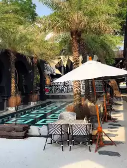 The moment you step into Morocco Beach Club, you'll feel as if you've been transported to an oasis in the desert. The brick-orange walls are decorated with geometric Arabic motifs, along with rattan furniture and tribal-patterned pillows, evoke a sense of relaxation and immersion. The beachfront area is perfectly designed, featuring sunbeds, chill-out sofas, and a seaside dining area. It's perfect for watching the sunset, listening to the gentle sound of the waves, and sipping on a cool drink. The striking design, which blends Moroccan architecture with a tropical touch, has made this a popular photo spot for both Thai and international tourists.