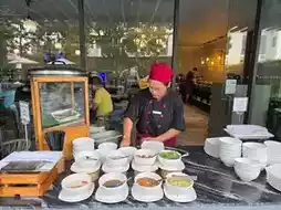 The rooms are spacious and come with a bathtub and city views. They are fully equipped with amenities, including natural daily-use products, a welcome fruit basket, and an air purifier, which is incredibly useful. Start your day refreshed with the hotel's signature drinks, such as traditional coffee, Thai iced tea, and Ovaltine, freshly prepared per order. The breakfast is of high quality.