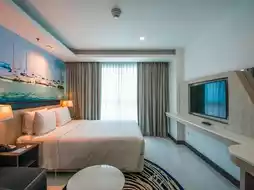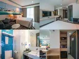 This small hotel offers everything you need. The luxurious lobby area offers a warm and inviting atmosphere, decorated in soothing tones of white and blue. The rooms are beautiful and offer a full range of amenities. There's also a rooftop fitness center for relaxing, and the rooftop swimming pool offers a fantastic view of the city. The breakfast buffet is delicious and varied. If you're visiting Pattaya and looking for a place with a great atmosphere, I highly recommend this. #Pattaya