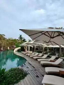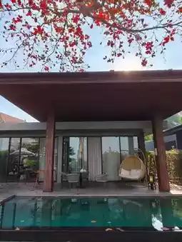 Experience a luxurious vacation on Jomtien Beach. This luxury resort is surrounded by tranquil nature. The rooms and pool villas are designed in a contemporary style, perfect for couples, families, and travelers seeking a luxurious getaway. 🍷🌴