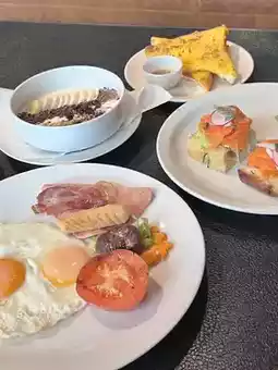 I chose to stay here because the check-in and check-out times are flexible—check out at the same time you checked in, which is absolutely amazing! Plus, breakfast is available from 7:00 AM to 4:00 PM, so you can sleep in as much as you want. After breakfast, you can take a leisurely stroll by the beach and enjoy the cool breeze. This time, I booked a 3-day, 2-night stay, and I must say it was truly relaxing. You can spend the whole day in the room, soaking in the tub and enjoying the tea and coffee provided, which are absolutely delicious. I wasn’t disappointed at all. The breakfast buffet offers a wide variety of options and is incredibly tasty!