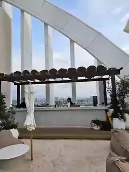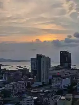 The swimming pool is situated on the 24th floor. When you step out of the elevator, the rooftop bar is on the left, and the pool is on the right. It offers breathtaking views of Pattaya city as far as the eye can see—truly beautiful!
