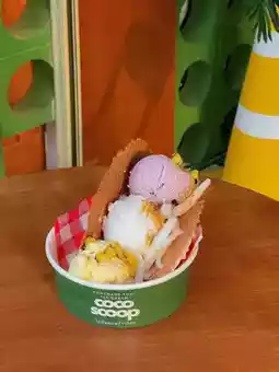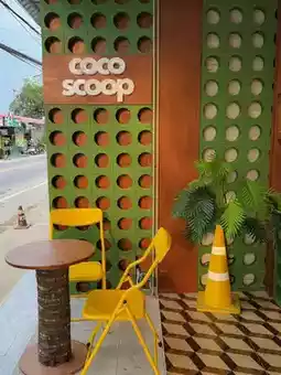 ✨ A newly opened homemade coconut ice cream cafe in Pattaya. They offer a variety of flavors, but their ice cream is coconut-based, like coconut-flavored coconut ice cream and coconut-banana ice cream. They let you try them before ordering. I like many of their flavors. They make them less sweet, so you can keep eating them. Besides the ice cream, they also have a variety of toppings to choose from. The cafe is decorated in cute colors, perfect for taking photos and creating summer content. 🍦🌴