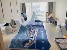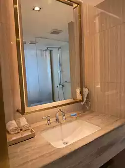 We booked a room with a king-size bed and a sea view. We were able to request an extra cot. The bathroom had separate wet and dry areas. The room had a TV, refrigerator, and a fully stocked minibar. The staff were excellent, even helping us carry our luggage. However, parking is a bit further away, as it's in a different building. 😅