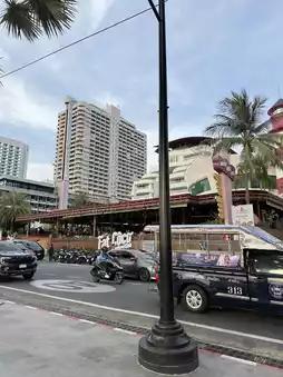 Wake up to a buffet breakfast with unlimited choices. The food selection is extensive, including Thai, American, and Chinese. It's a great value. The hotel is right on the beach, just cross the street to enjoy the ocean view. Anyone visiting Pattaya should definitely stay here! ✨