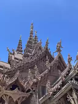 #sanctuaryoftruth #woodentemple #thaiarchitecture #skyandsculpture #pattayalandmark #carvingart #travelthailand