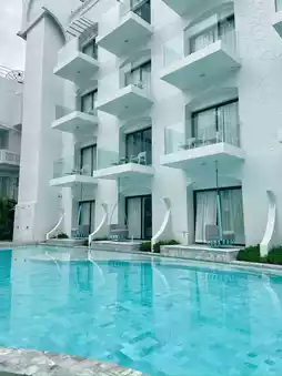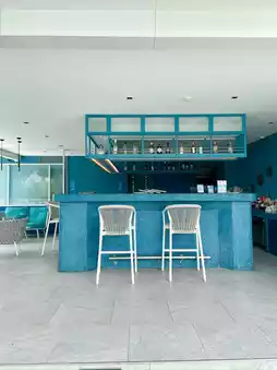 ✨ A stylish beachfront spot in Pattaya that blends modern comfort with a calm seaside vibe. The clean white-and-blue tones give off that perfect coastal charm.