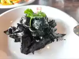 - Stir-fried squid in black sauce. This dish is a must-try. The squid is fresh and chewy.