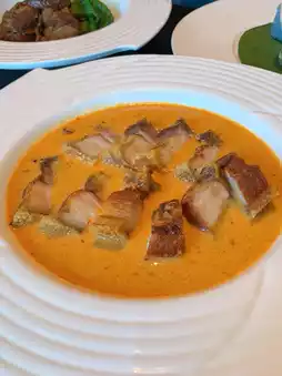 Another must-try is the Thai cuisine at the hotel, which is equally impressive. A highly recommended dish is the crispy pork Panang curry, which is absolutely delicious.
