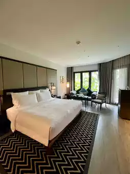 InterContinental Pattaya Resort is a luxurious resort offering a serene and private atmosphere, perfect for a peaceful getaway. Located on a hillside by the sea, it provides panoramic views of the Gulf of Thailand. The resort is surrounded by lush greenery, and the rooms are beautifully decorated in a contemporary Thai style with incredibly soft beds and full amenities. The resort features multiple swimming pools cascading along the coastline, making it an ideal spot to watch the sunset.