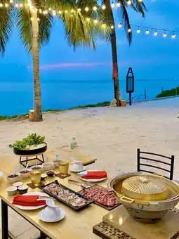 A highlight not to be missed is the private beachfront barbecue experience. Set up right by the beach, it offers a delightful ambiance with cool breezes and stunning sea views. This luxurious barbecue features premium ingredients, including Kurobuta pork, high-quality beef, and fresh seafood, served with authentic Thai dipping sauces. Whether you come with your partner, friends, or family, this meal is sure to be a warm and romantic experience, making it a unique feature of the resort that is hard to find elsewhere.