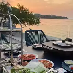 Plus, food coupons can be used at the hotel. So I ordered a grilled pork by the sea. Let me tell you that it's delicious and awesome. 💙🤍