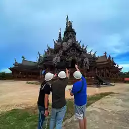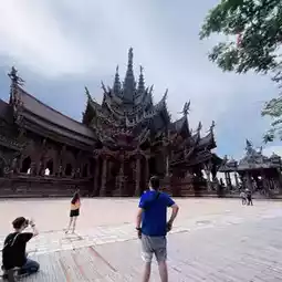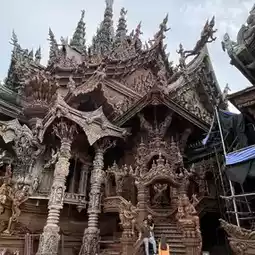There is a road from the entrance to the main hall. The Sanctuary of Truth is 100 meters high and 100 meters wide. It is all made of wood carvings. The design style is mainly based on the traditional Asian art style and the gorgeous style of the Bangkok Dynasty in Thailand, showing the relationship between man and the universe. relationship and the superb woodcarving craftsmanship of Thailand.