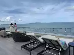 When I went, Jomtien Beach was closed to allow street food vendors on Jomtien Beach, but you can walk and enjoy the view. The beach is quite open and clean. We chose this hotel because of the beautiful view, the beach and the sea, and the convenience of finding delicious food. The atmosphere is quiet and peaceful. It is located at the end of Jomtien Beach.