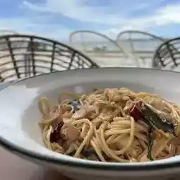 Atmosphere/Location - The shop is very spacious, with many corners and each corner has a different view. But I assure you that every corner is beautiful. The food is delicious, the price is quite high, but compared to the atmosphere, it is worth it. I recommend going in the evening to watch the sunset. During the day, it is not hot because there are trees covering almost the entire shop. The wind is comfortable.