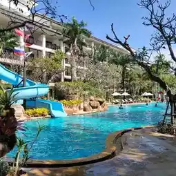 Ravindra Beach Resort and Spa in Pattaya which is right next to the Movenpick Hotel, Ravindra is indeed a bit old, but the overall feeling of the hotel is still pleasant, the place is quiet, and the waiters are polite. Also love their breakfast is quite tasty and have many varity.