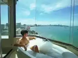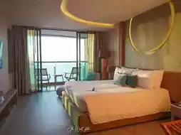 Cape Dara Resort Pattaya is a large modern-contemporary style hotel with over 200 rooms and 13 types of rooms to choose from. The room I stayed in and brought to show you is the 'Dara Deluxe Room' with a Panoramic Sea view bathroom🏖, allowing us to soak in the bathtub and enjoy the panoramic view of the sea. The view is so beautiful that you will forget all your fatigue for the whole week❤ (There is a separate shower for those who don't want to soak.) The room has a King Size bed with a cute blue floating duck, complete with amenities, a minibar in the cabinet where you can eat everything for free. There is a small balcony. Let's go sit and watch the sunset comfortably. 🌅 (See the view from both the bathtub and the balcony in the post.) When checking in, we will receive a welcome drink exchange card to use at the hotel's various restaurants or the pool bar.