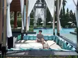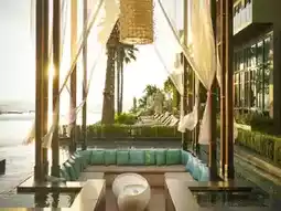 The hotel has 2 swimming pools with many beautiful viewpoints. The first highlight is next to the large pool, which is a high-pillar area where you can sit and relax in a group or take beautiful photos. There are two pool bars at both pools. The upper one is called Twinkle Pool Bar and the lower one is called Walala Beach Bar. Near the lower pool, there is a beautiful tent where we can choose to sit and watch the sunset by the sea. 🌅 The large poolside restaurant is called RADIUS, where you can eat breakfast. In the morning, there are many options to choose from. You can eat until you are full. If you come to sit in this room at night, there will be relaxing music. For those who are tired, the hotel has a spa called Luminous Spa. And on the balcony in front of the Spa, there is a beautiful photo spot that I brought to open this post.