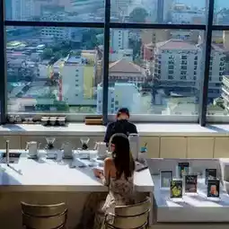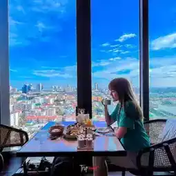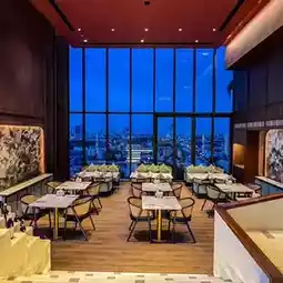 On the 23rd floor of the hotel is a restaurant and cafe.