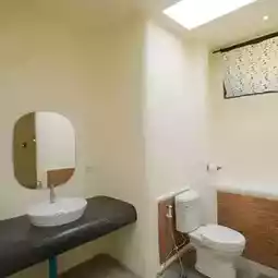 🏡 Sib Saen Samut, a pool villa access accommodation with spacious rooms, complete facilities, comes with a private rooftop and is next to the swimming pool, you can open the door to the pool.