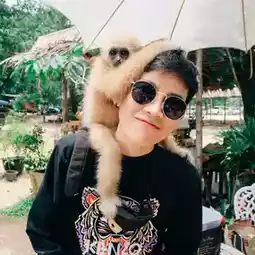 We also took pictures with a cute little spectacled langur 🐒 Her name is "Latte". She is cute and quite cuddly. She likes to put her arms around their necks or reach out to others all the time. On the upper floor, which is the tree cafe zone, there are beautiful seating areas for us to choose from, including hammocks, garden corners, and waterside corners, but every corner faces the pond where you can see the elephants playing in the water. 🐘