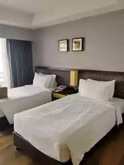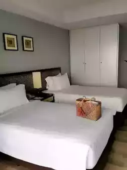 🛏️🛋️The room looks clean and well-allocated space, but the wooden furniture in the room, such as cabinets and doors in the room, is starting to get old, probably because the hotel has been open for a long time.