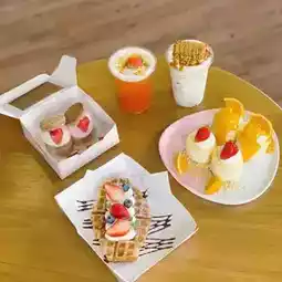 A cute homemade dessert shop decorated in a minimalist style with a cute and adorable logo, a cute rabbit 🐰. As for the photo corner, the shop has arranged a cute corner for you to take lots of photos. 📷