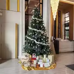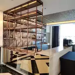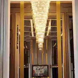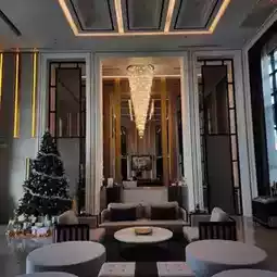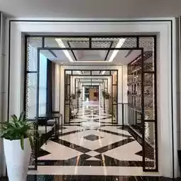 The classic building is decorated with luxury, using cream and black colors that create a sense of luxury. The lobby has a large chandelier. If it is during the day, the lights will not be turned on. I recommend coming in the morning when they will still be on or taking pictures at night. It is very beautiful. The sofas and decorations are in European style. The walkway to the room is made of very luxurious tiles. On the side, there is a swimming pool, a fitness center, and a sauna. It is very beautiful.