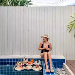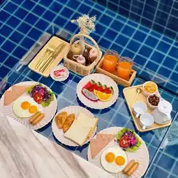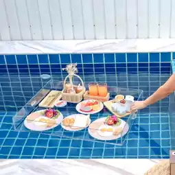 Breakfast is served on a floating tray, so you can float on the water.