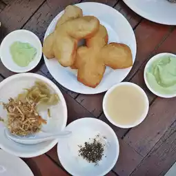 🍽️ Breakfast here is very full. It tastes good. You have to try the fried dough sticks and custard. There is also soy milk with toppings. Other food menus are also very delicious. There are many drinks to choose from. Orange juice, lychee juice, grape juice. It's awesome.