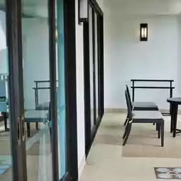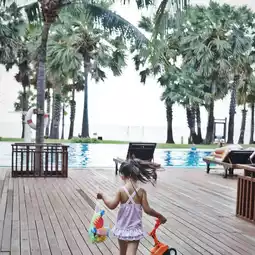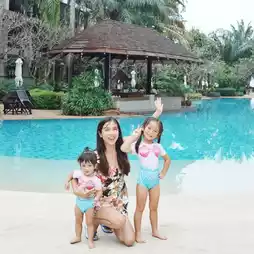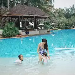 🏊🏻♂️ The swimming pool is wide and has 3 pools. Each pool has a different signature. The innermost pool is next to the beach. There is a kid's pool that is not deep. You can swim and enjoy the sea view. It's very chill. The middle pool has a slide and a bar for serving drinks. It's perfect for families and those who like to chill. The outermost pool has a waterfall. It gives a very good feel. Both pools are made into slopes like the beach.
