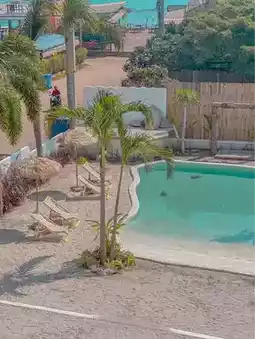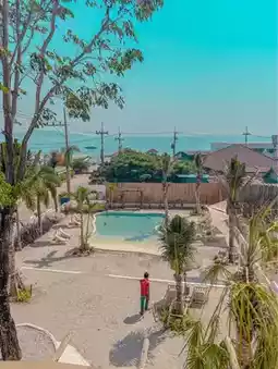 🏖️ It is an open shop with a pool area below that is very beautiful for taking pictures 👉🏻 They have two floors. You can walk up the stairs in front of the shop and see the view on the second floor where you can see the sea and the pool below. Plus, this place is also open as a place to stay😍
