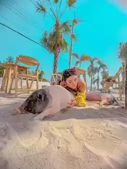 Newly opened cafe 📍kamari cafe is a cafe decorated in a Bali style and the highlight is the piglets 🐖 The shop is very Summer on the beach 🏖️